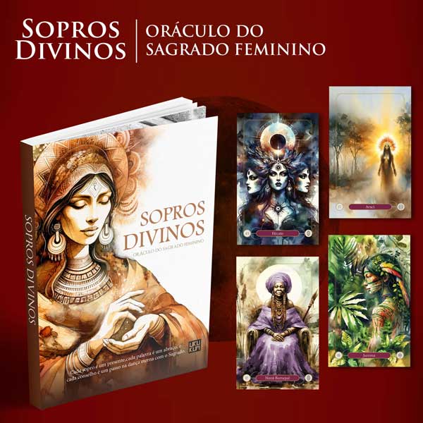 Sopros Divinos é um oráculo que une a potência simbólica de deusas, entidades e mulheres sagradas de diversas culturas com uma atenção especial às raízes brasileiras. Metade das cartas é dedicada a figuras afro-brasileiras e indígenas, celebrando a pluralidade espiritual do Brasil. Cada mensagem é canalizada como um sopro da alma, oferecendo não apenas orientação, mas um convite ao autoconhecimento e à reconexão com o sagrado feminino ancestral.